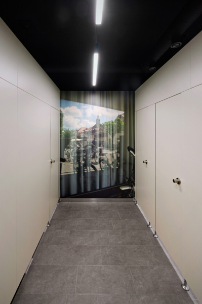 Neugestaltung der Sanitäranlagen in der Universitätsbibliothek Erlangen- Nürnberg in Zusammenarbeit mit dem KJS+ Architekturbüro Erlangen mit dem Projekt »rueckspiegeln« als unerwartete Raumerweiterung. (Fotografie Gerhard Hagen) 2014